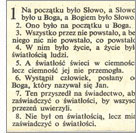 „Moje owce słuchają mego głosu, a Ja znam je. Idą one za Mną[…]. Ojciec mój, który Mi je dał, jest większy od wszystkich […]. Ja i Ojciec jedno jesteśmy». I znowu Żydzi porwali kamienie, aby Go ukamienować. Odpowiedział im Jezus: «Ukazałem wam wiele dobrych czynów pochodzących od Ojca. Za który z tych czynów chcecie Mnie ukamienować?» Odpowiedzieli Mu Żydzi: «Nie chcemy Cię kamienować za dobry czyn, ale za bluźnierstwo, za to, że Ty będąc człowiekiem uważasz siebie za Boga» (J 10:27-33).